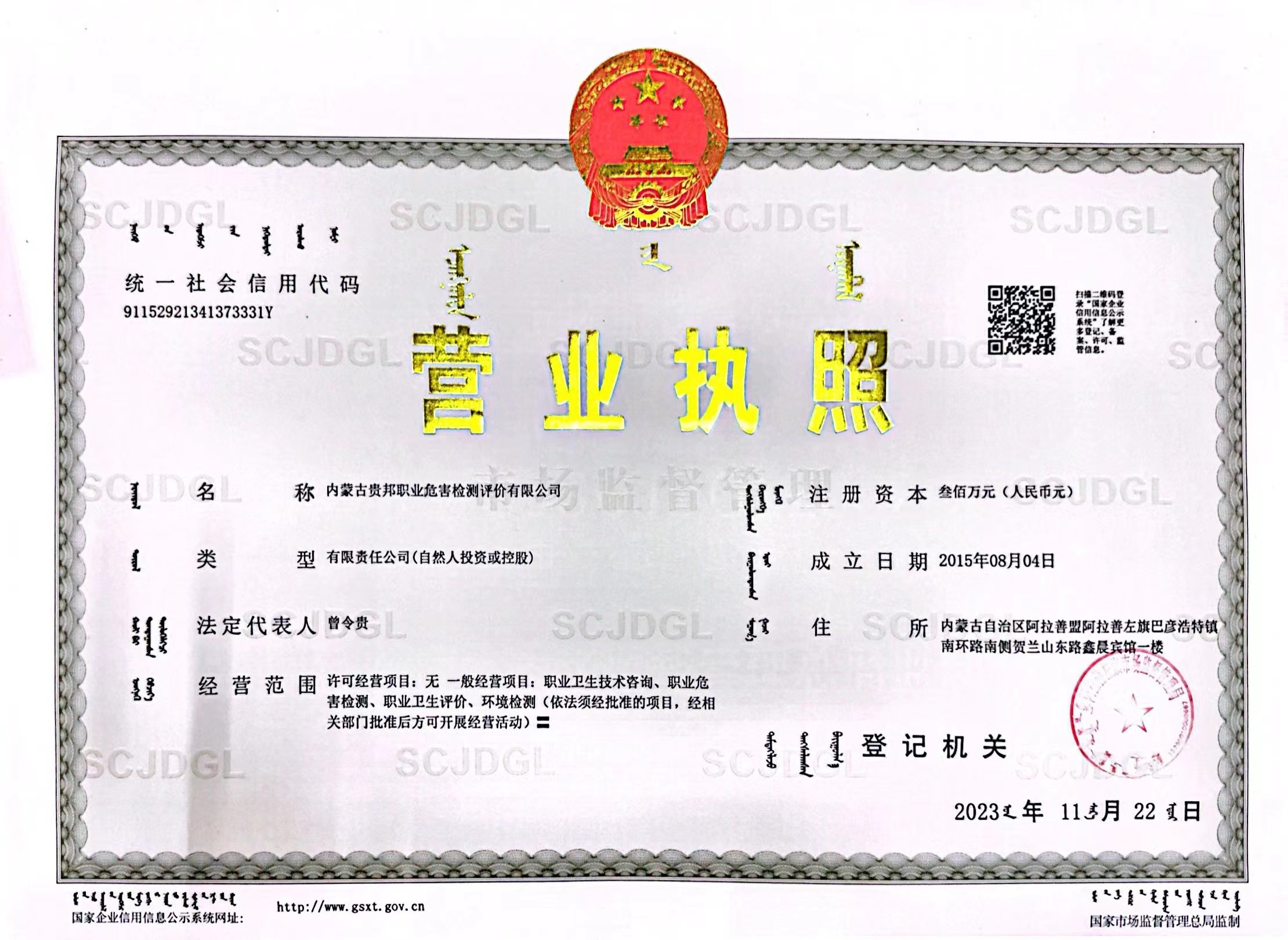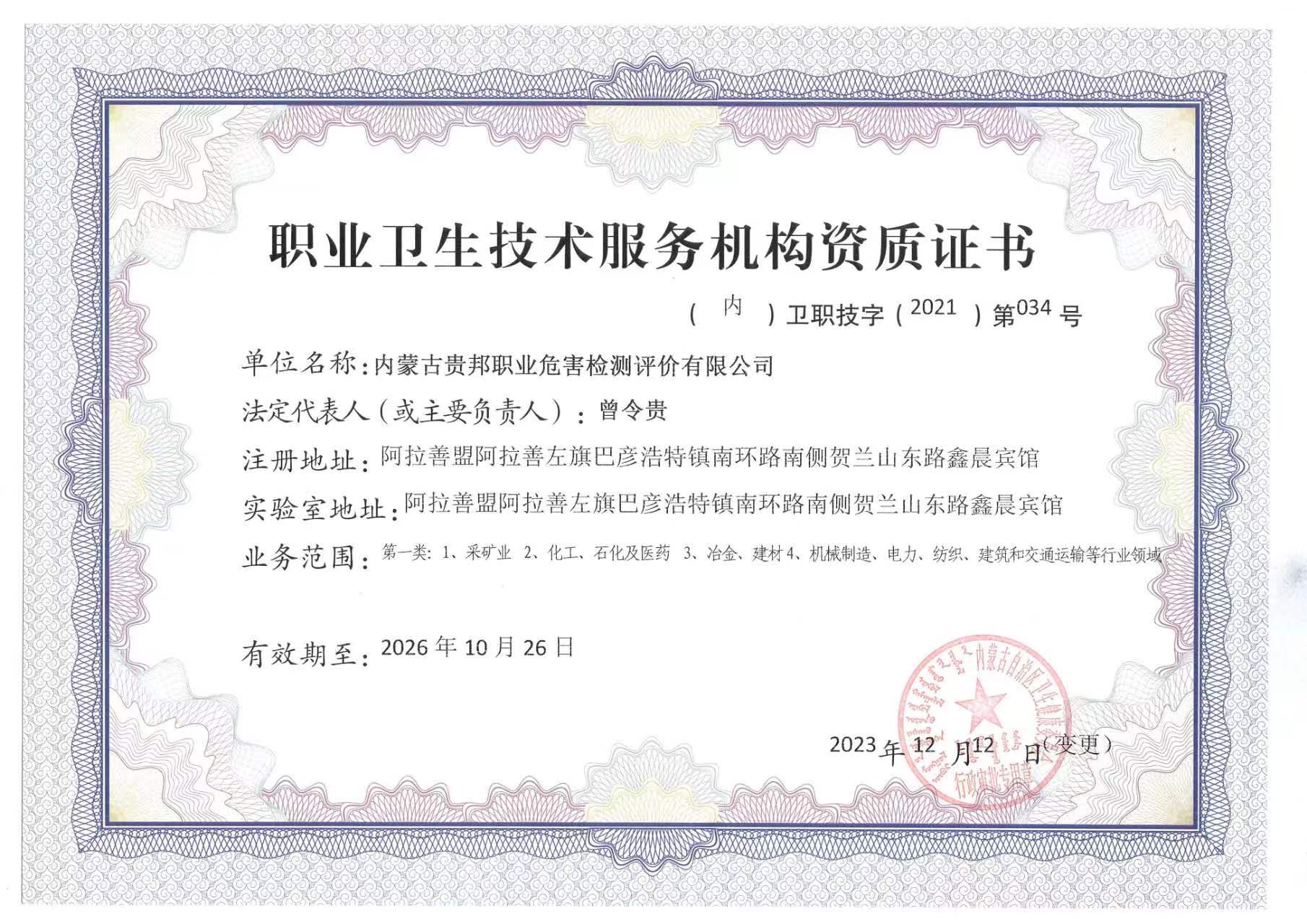 內(nèi)蒙古貴邦職業(yè)危害檢測評價(jià)有限公司(m.jdzdm.com)版權(quán)所有 地址:阿拉善盟阿拉善左旗賀蘭山東路加氣站南側(cè)鑫晨賓館一樓 24小時(shí)熱線:18947252199 蒙ICP備:蒙ICP備21006705號-1 公安備案號:50011802010212